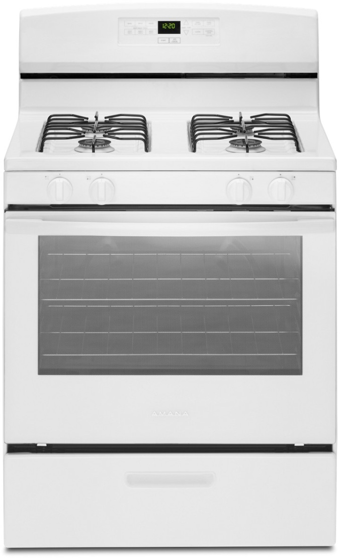 This 30-inch Amana® Gas Range with 5.1 Cu. Ft. Capacity features a Versatile Cooktop with multiple burner options to help you make more of your favorites at once. Get cooking quickly with Bake Assist Temps that offer convenient preset temperature settings. Easy Touch Electronic Controls Plus are large and legible.Read More