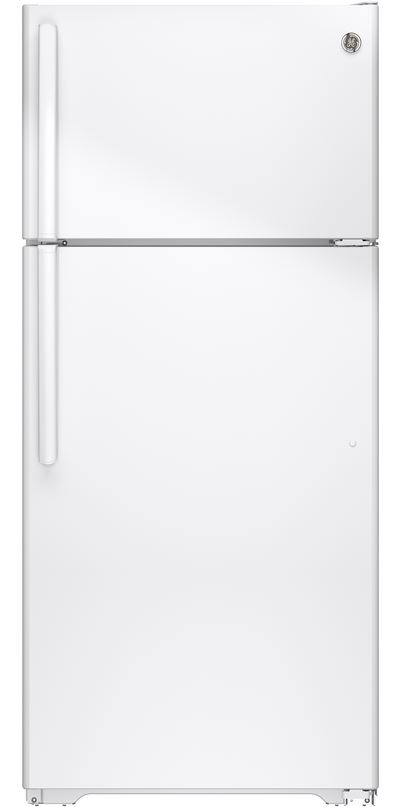 GE® 21.2 Cu. Ft. Top Freezer Refrigerator-White with adjustable glass shelves and factory installed ice makerRead More