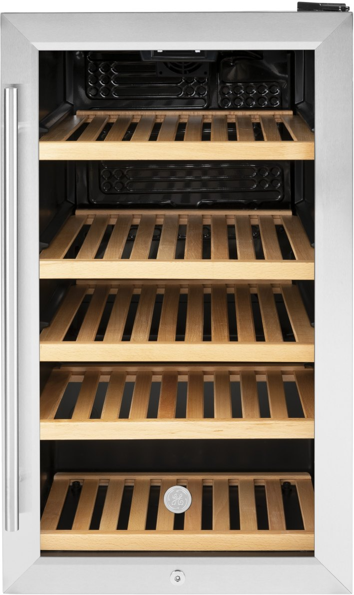 Stainless steel door with large glass window showcases your beverages for easy selection. Five genuine oak shelves enjoy the natural look and dependability of 3 full depth & 2 half depth wooden shelves.Read More