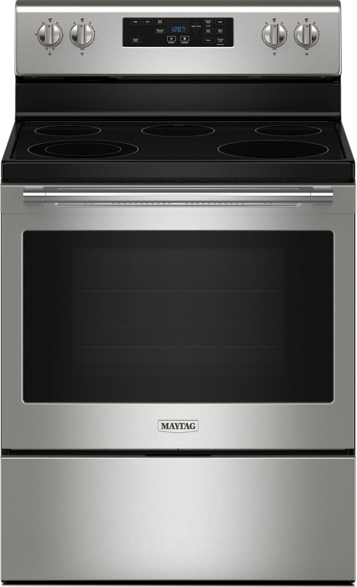 This Maytag® steam clean range will take on mealtimes with power and performance. Built with hardworking features like the 9"/6" Dual-Choice™ element and variable broil, it delivers the heat you need and the char you want all while the warming center keeps cooked foods warm.Read More